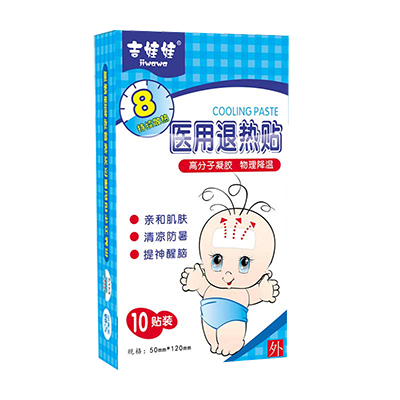 鄭州康宜健醫療生產的吉娃娃醫用退熱貼專門針對寶寶生理特點設計合適的尺寸和膠體厚度,清熱毒,解表燥,有效緩解發熱引起的各種不適。退熱貼可以貼在寶寶的額頭、脖頸、太陽穴或其他需要降溫、冷敷的部位,如果要加快降溫速度,可加用數貼,同時貼在左右腋下動脈、左右股動脈處等大血管處,有利于退燒。