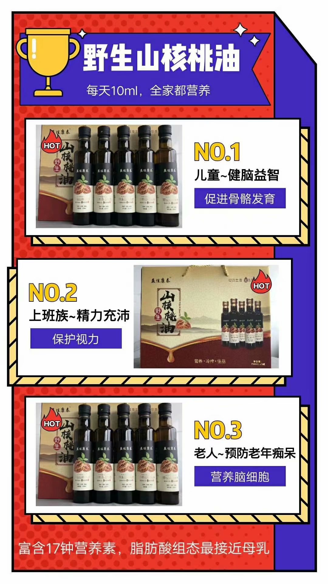- 咱這一款是針對(duì)野生山核桃油半天落地會(huì)模式。1980的單,一套的話是20瓶。四個(gè)大禮盒,再送價(jià)值900的果蔬凈化機(jī)野生山核桃油營養(yǎng)價(jià)值高,易吸收,產(chǎn)品有高度,免教育產(chǎn)品,一說都認(rèn)可1.不但老年人認(rèn)同,2